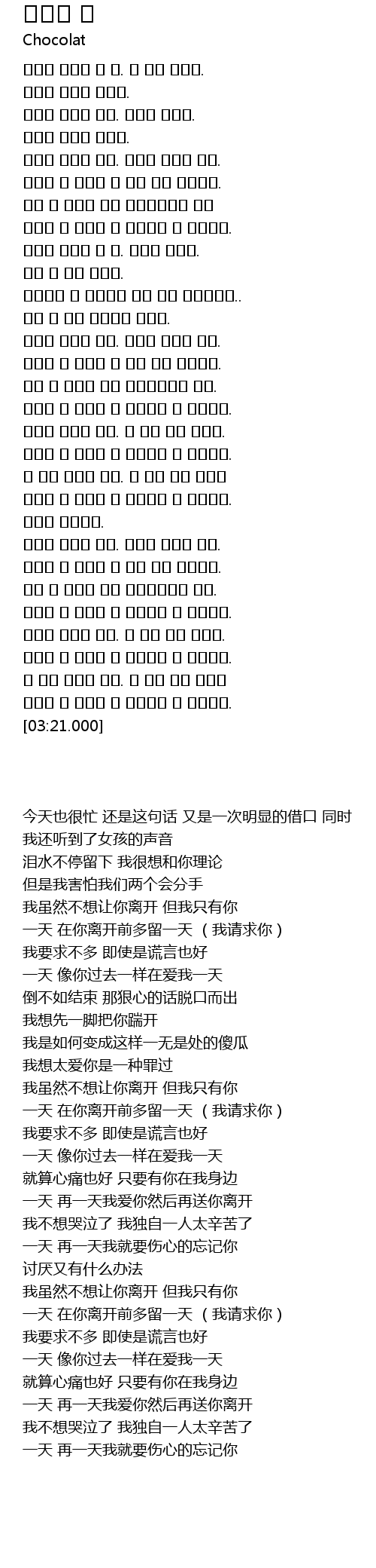 | [03:03.690] | 하루만 더 하루만 더 사랑하다 널 보내줄게. |