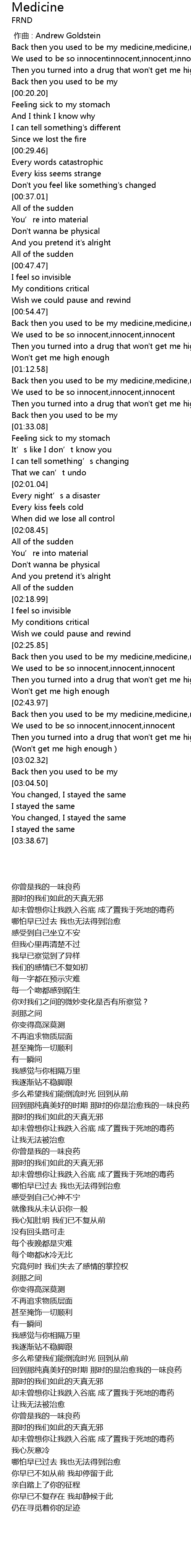 | [00:00.30] | Back then you used to be my medicine,medicine,medicine |