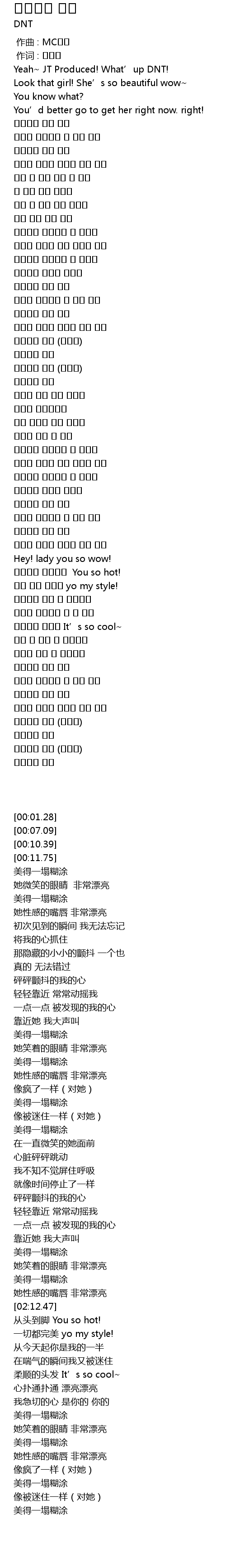 | [00:01.28] | Yeah~ JT Produced! What’up DNT! |