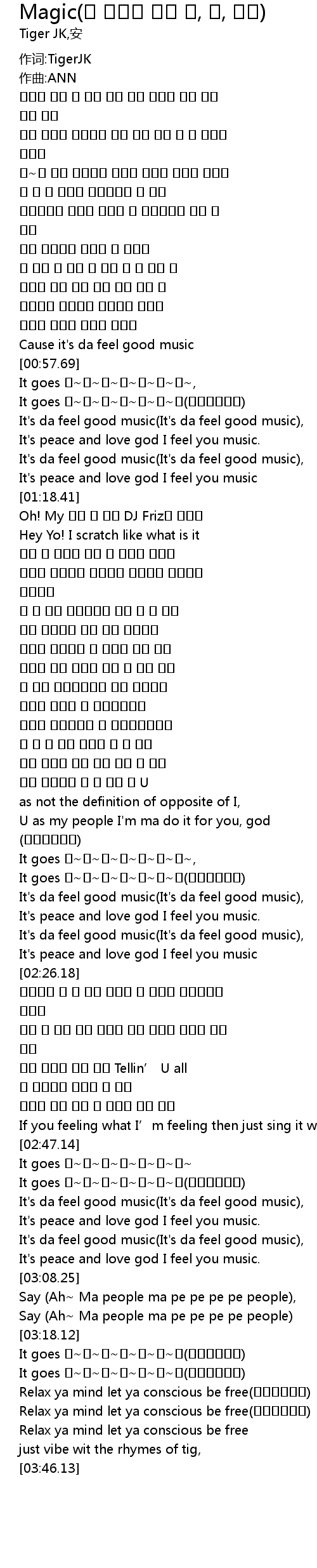| [01:18.75] | Oh! My 마치 내 몸이 DJ Friz인 것처럼 |