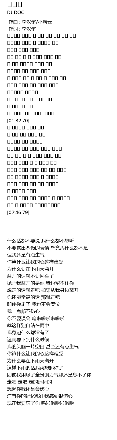 | [02:11.08] | 이렇게 비오는 날이면 너가 생각 나겠지 |