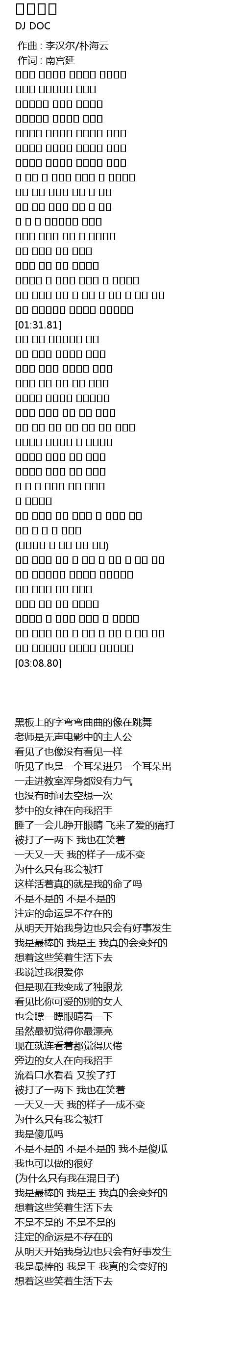 | [02:18.06] | 被打了一两下 我也在笑着 |