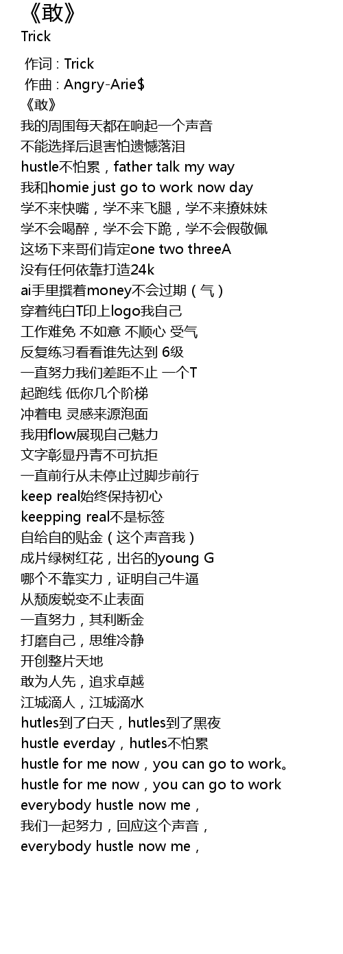 | [01:33.449] | hustle everday, hutles bù pà lèi |
