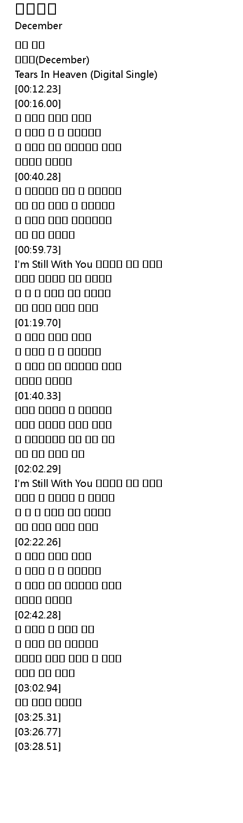 | [01:00.12] | I'm Still With You 우리함께 걷던 이길도 |