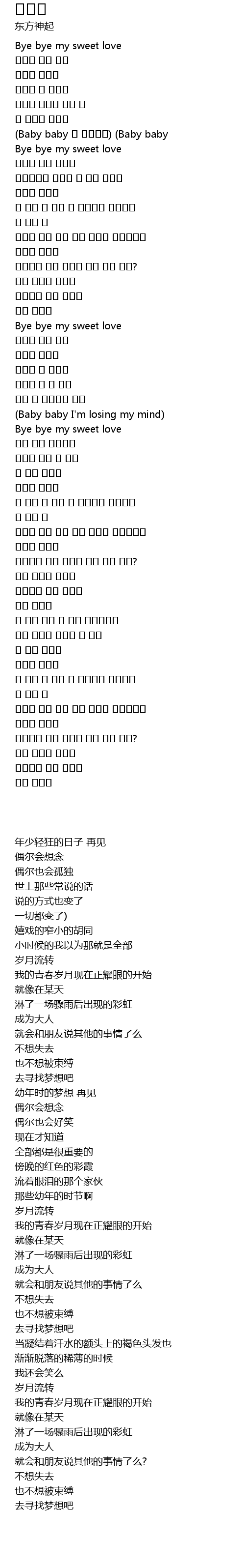 | [00:25.530] | 年少轻狂的日子 再见 |