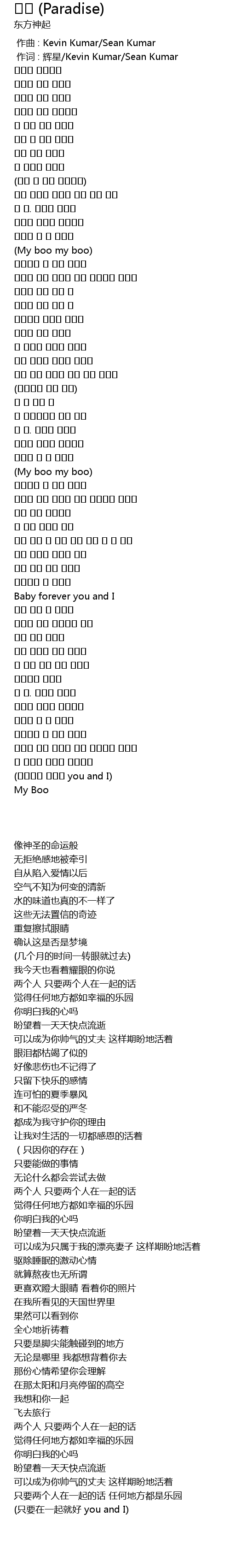 | [00:01.00] | 作词 : 辉星/Kevin Kumar/Sean Kumar |