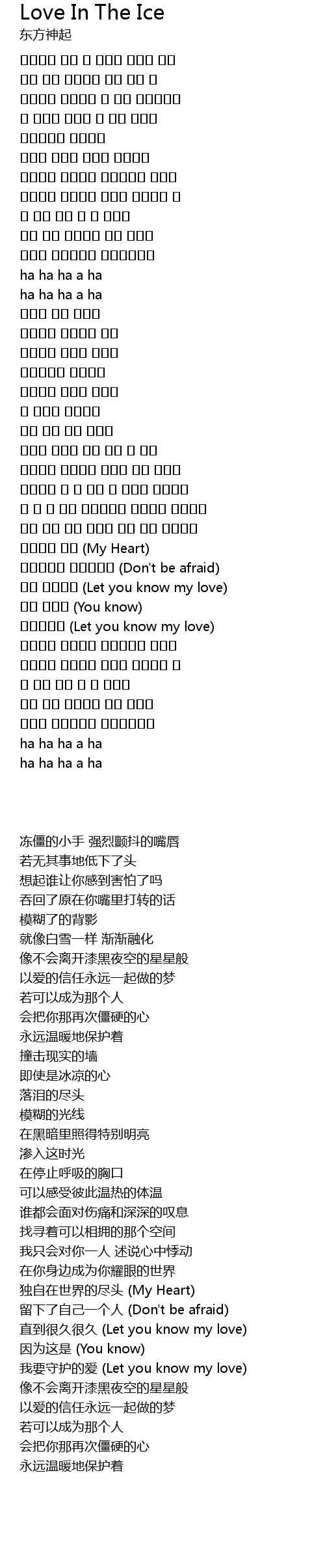 | 歌曲 | Love In The Ice |