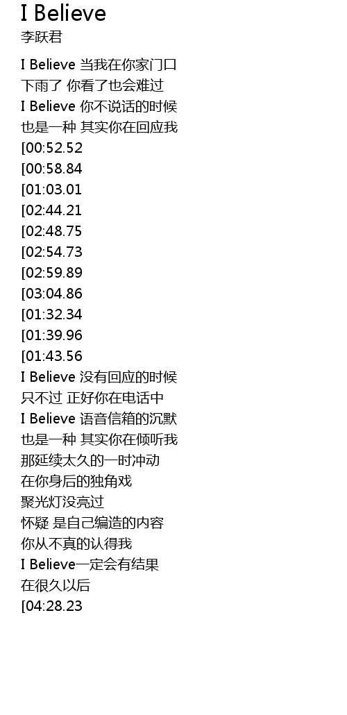 | [01:56.53] | I Believe 没有回应的时候 |