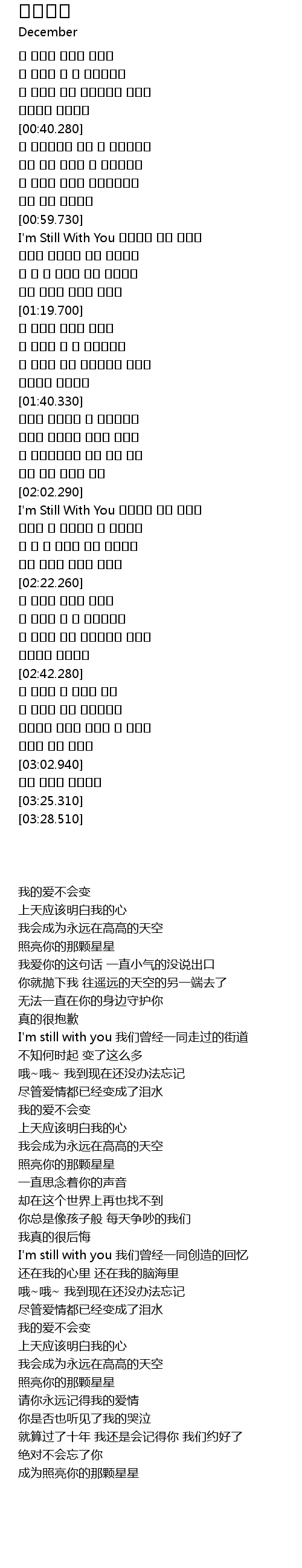 | [01:00.120] | I'm Still With You 우리함께 걷던 이길도 |