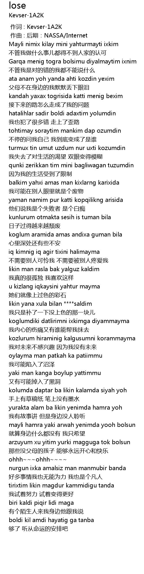 | [00:00.000] | 作词 : Kevser-1A2K |