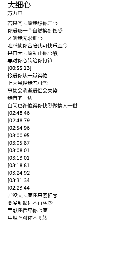 | [04:18.98][03:24.92][02:01.01] | 如若计较得失因果不是我 |