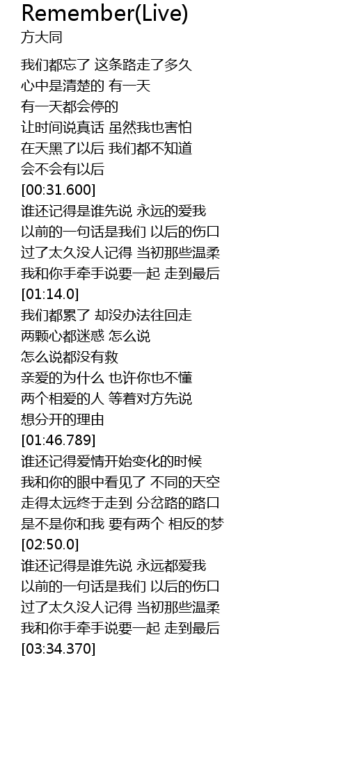 | [03:01.0] | 谁还记得是谁先说 永远都爱我 |