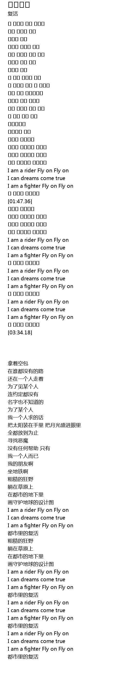 | [02:58.35] | I am a fighter Fly on Fly on |