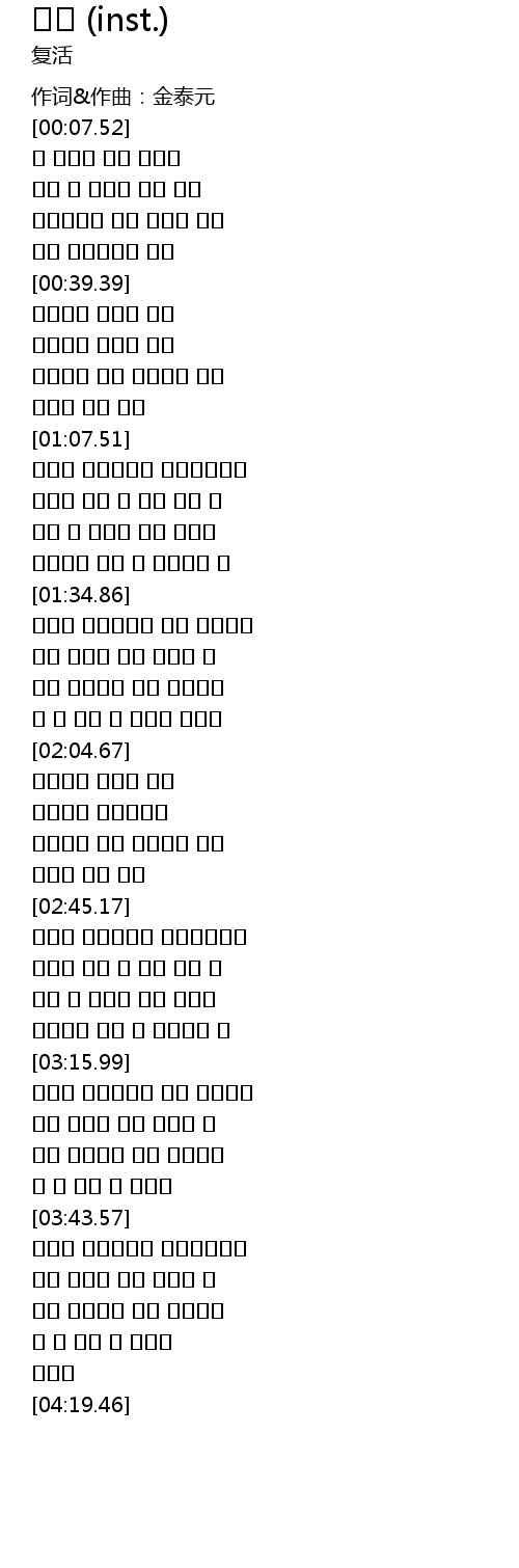 | [00:00.00] | 作词&作曲:金泰元 |