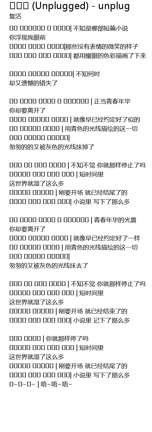 | 歌曲 | 소나기 (Unplugged) - unplug |