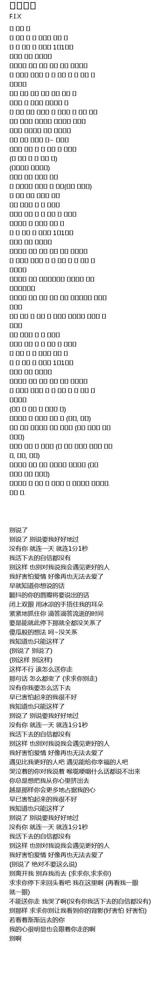 | [03:13.590] | 그러지마 제발 너의 뒷모습을 보이지마 (너무 겁이나 너무 겁이나) |