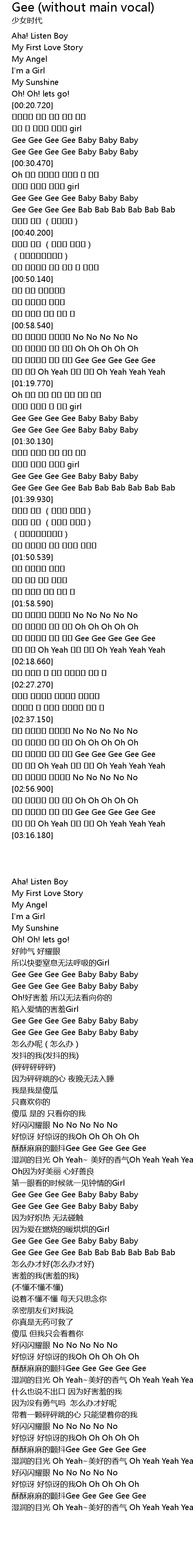 | [00:35.380] | Gee Gee Gee Gee Baby Baby Baby |