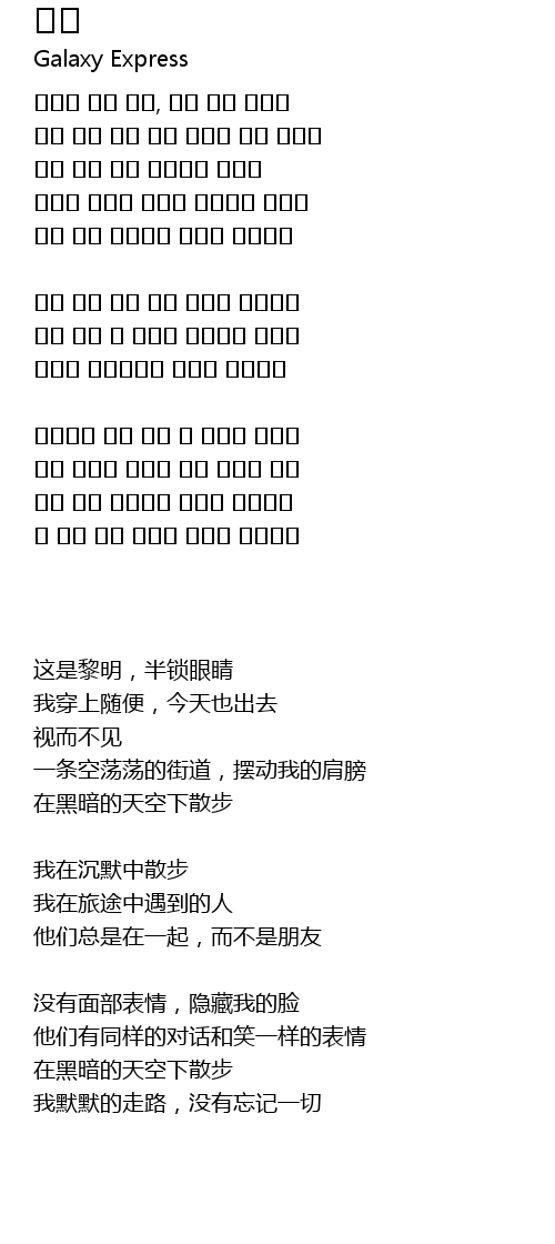 | 나 모든 것을 잊은채 말없이 걸어가네 |