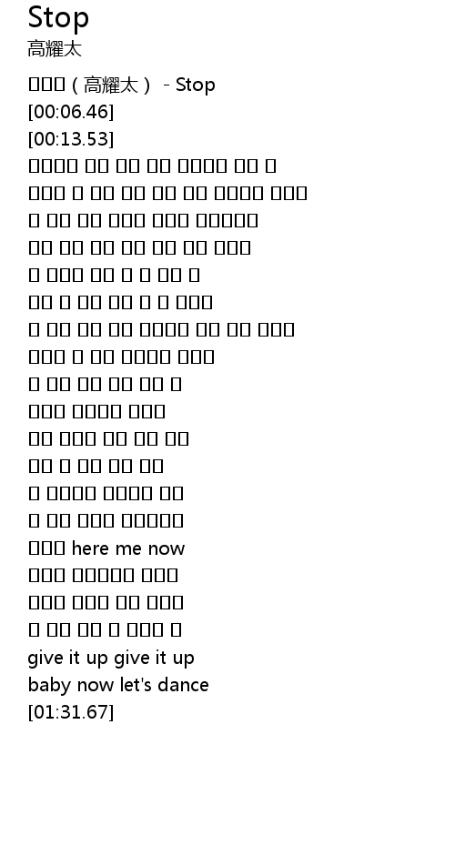 | [00:00.41] | 코요태(高耀太) - Stop |