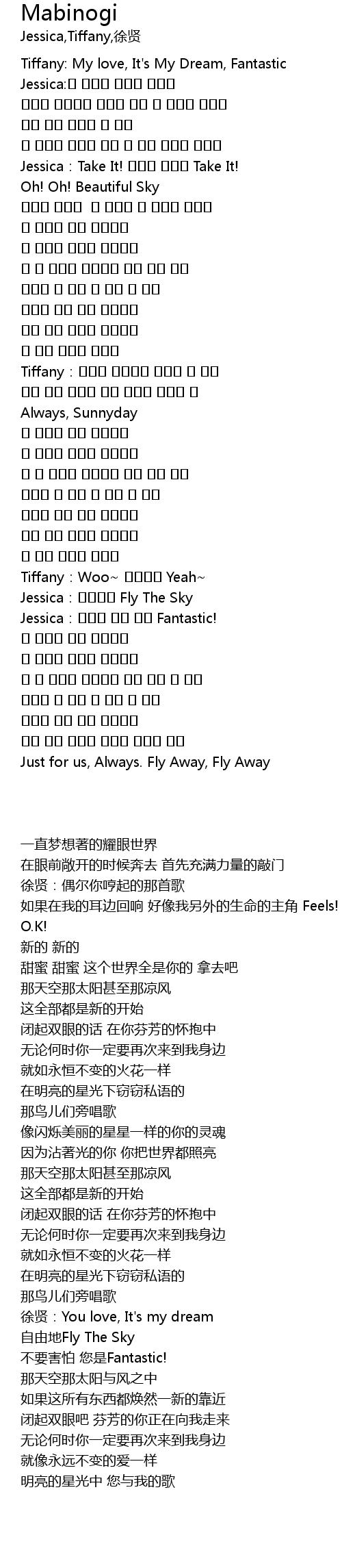| [02:36.29] | Jessica:자유롭게 Fly The Sky |