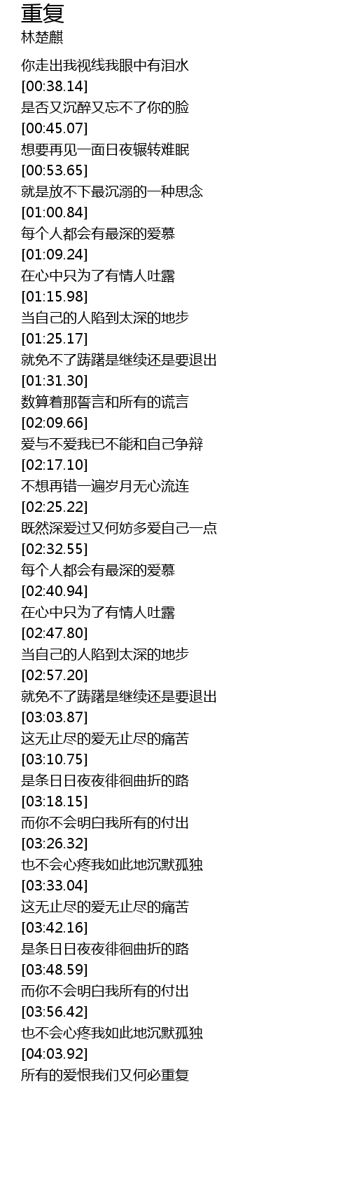 | [04:06.67] | suǒ yǒu de ài hèn wǒ men yòu hé bì chóng fù |