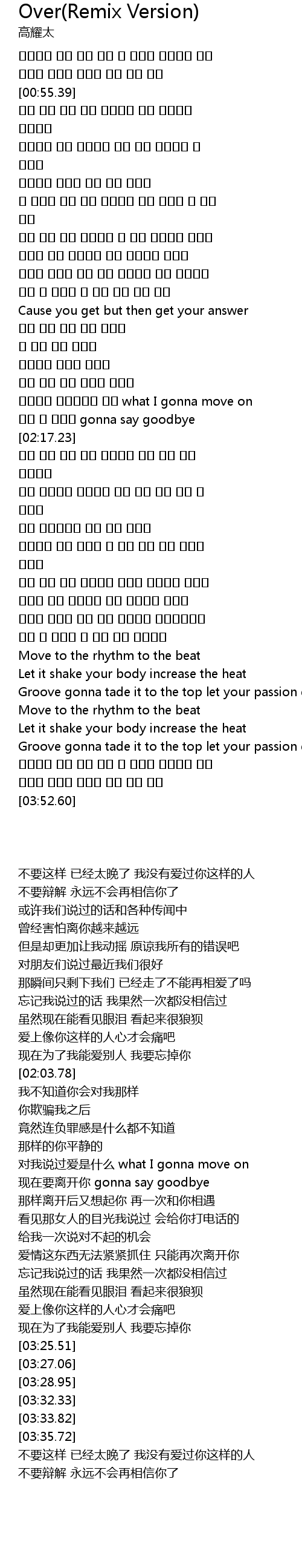 | [01:36.34] | 내가 했던 말은 지워버려 나 역시 너믿은적 없었어 |