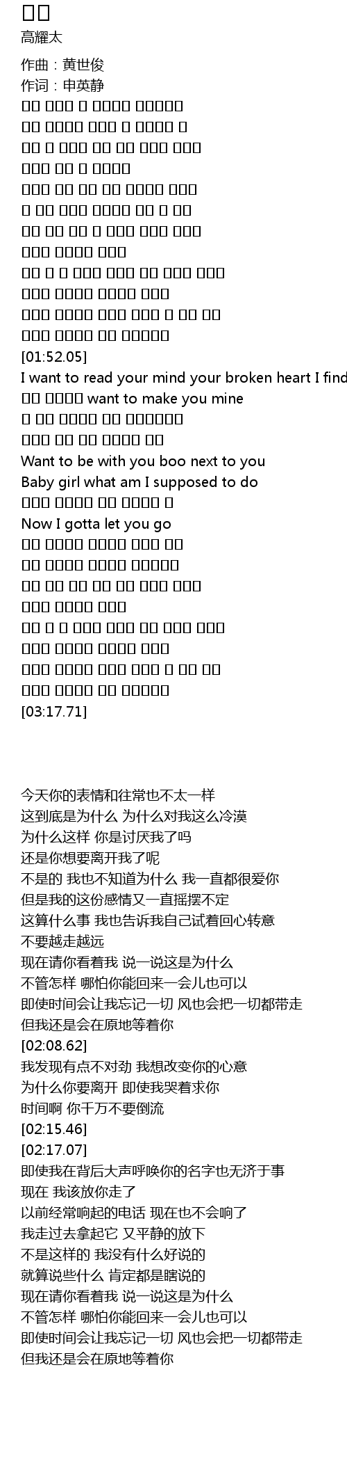 | [01:24.70] | 现在请你看着我 说一说这是为什么 |