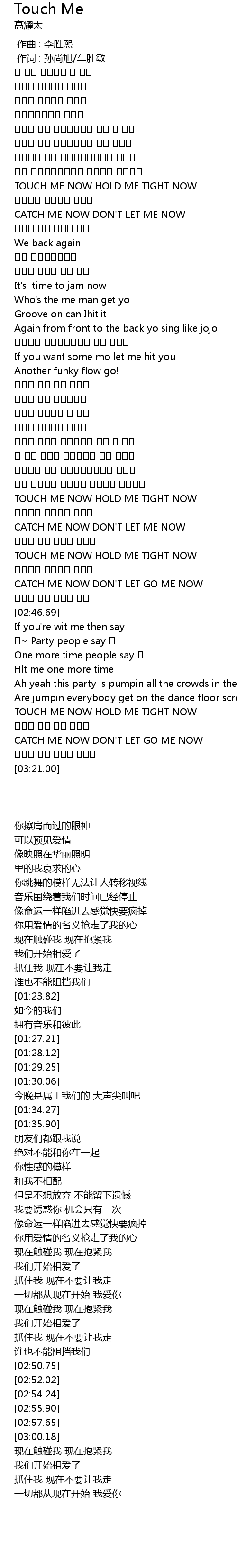 | [03:04.64] | TOUCH ME NOW HOLD ME TIGHT NOW |
