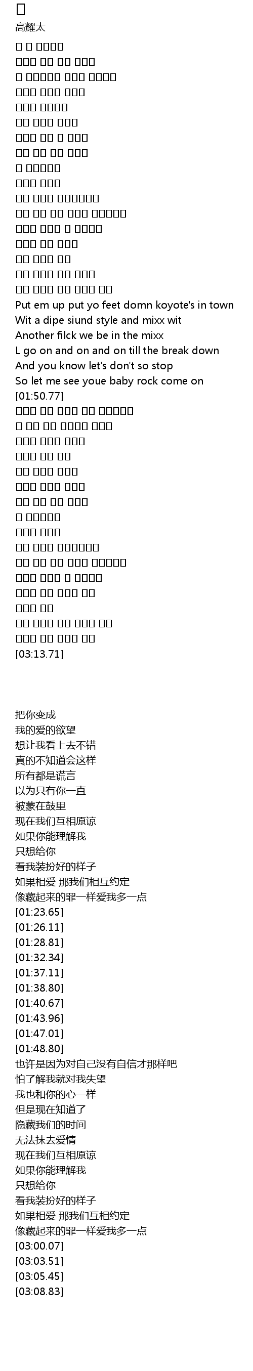 | [01:37.11] | Put em up put yo feet domn koyote's in town |