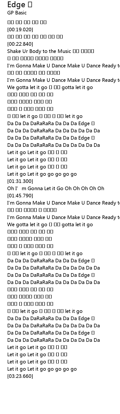 | [02:31.210] | Da Da Da DaRaRaRa Da Da Da Edge 타 |