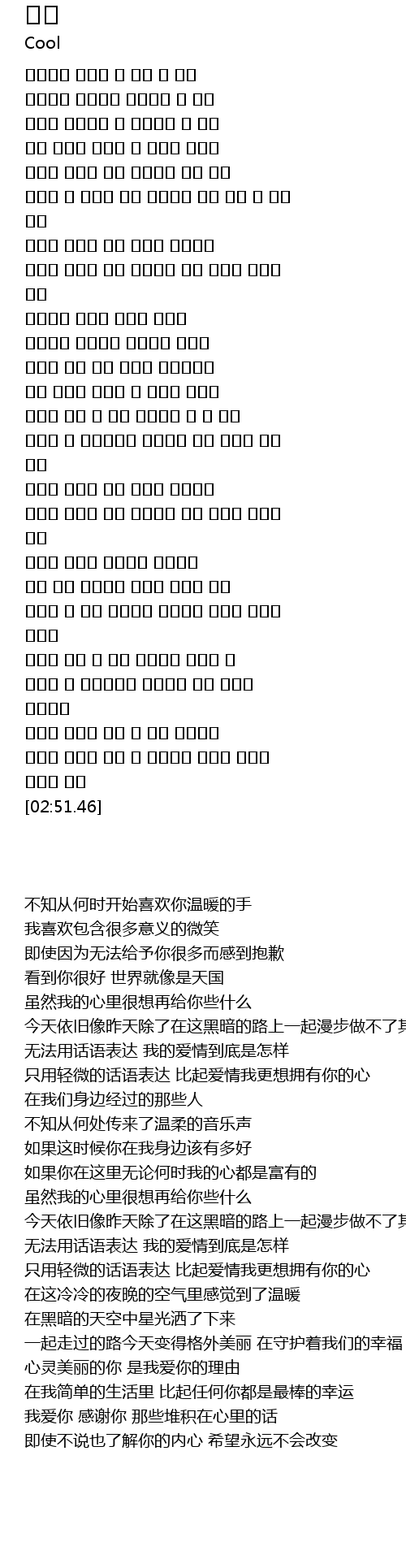 | [02:44.43] | 即使不说也了解你的内心 希望永远不会改变 |
