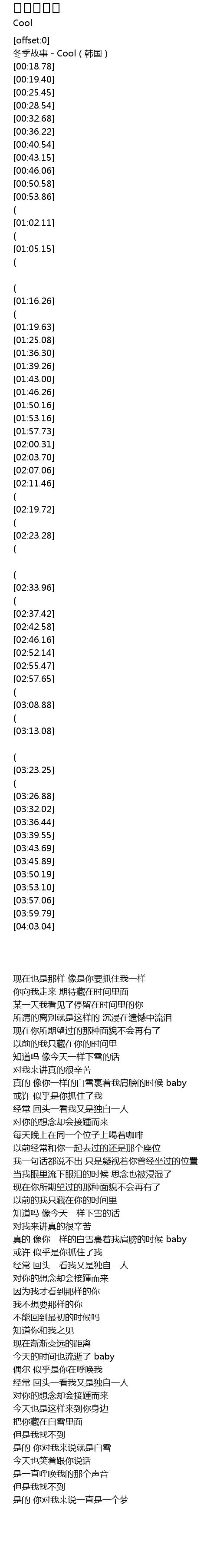 [00:00.81] 冬季故事 - Cool(韩国)