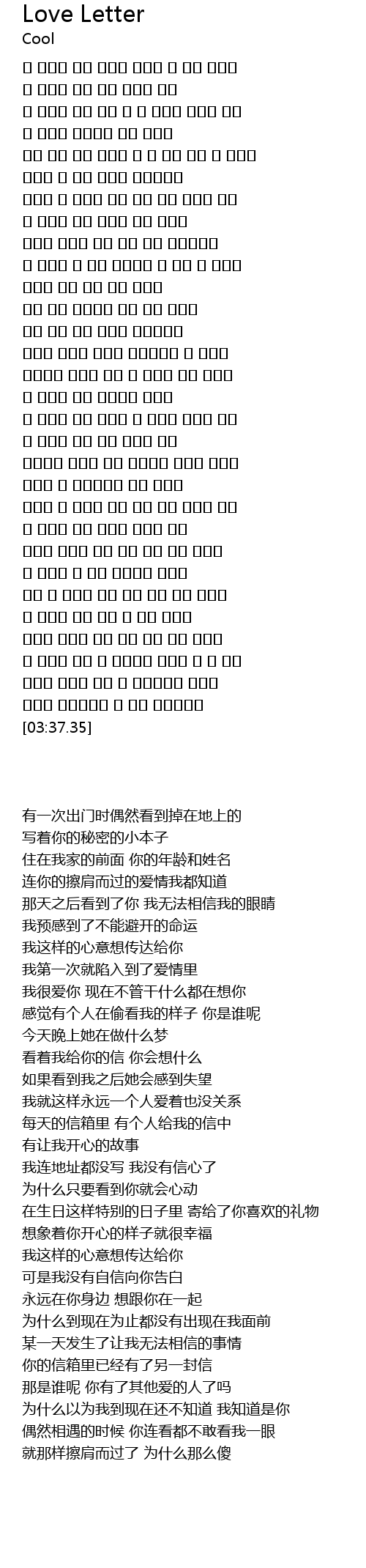 | [03:03.48] | 네 우편함 속에 이미 또 다른 편지가 |