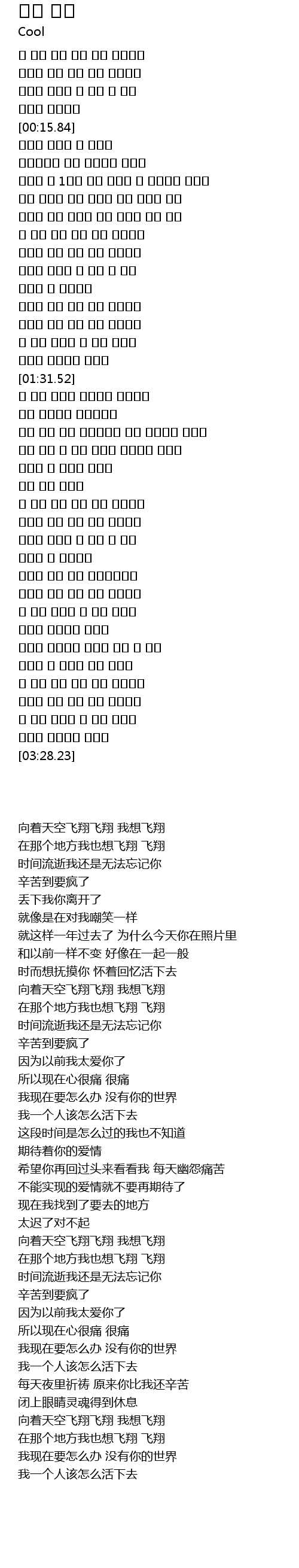 | [02:29.93] | 저 하늘 날아 날아 날아 가고싶어 |