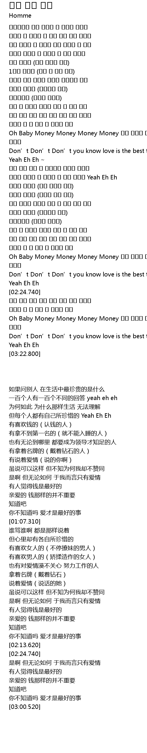 | [00:56.640] | Oh Baby Money Money Money Money 따윈 중요치 않아 |