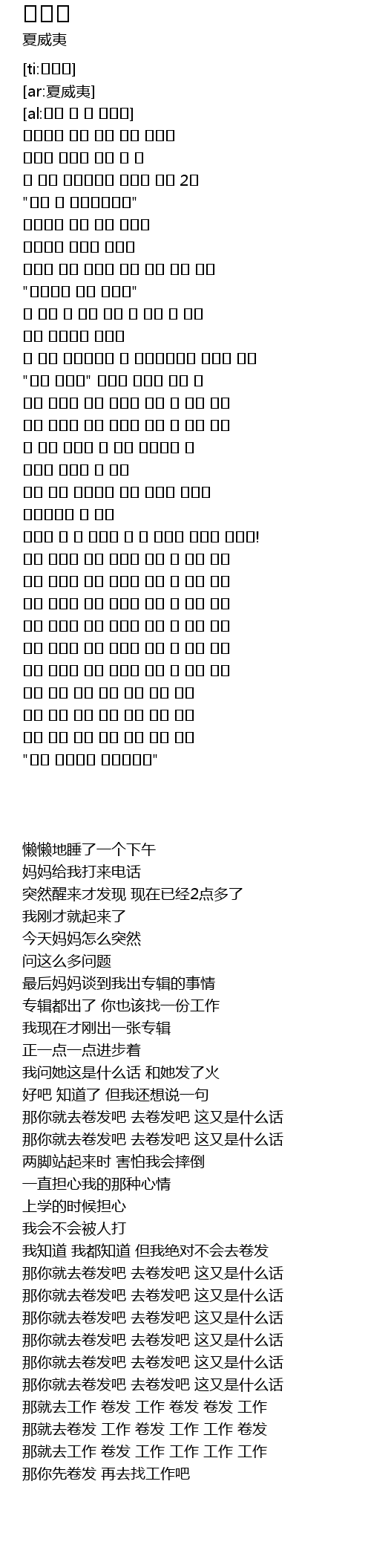 | [02:58.96] | 那就去卷发 工作 卷发 工作 工作 卷发 |