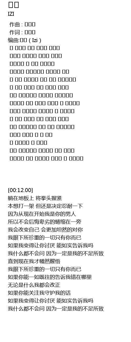 | [00:17.00] | 躺在地板上 将拳头握紧 |