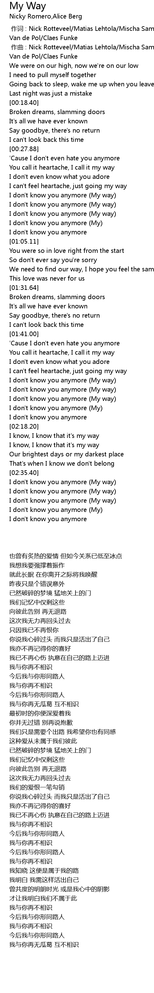 | [02:40.15] | I don' t know you anymore My way |