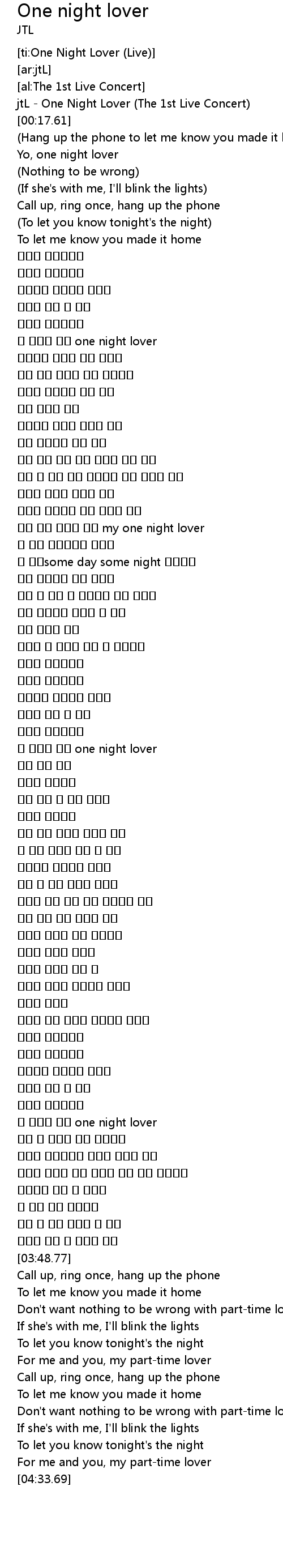 | [00:09.80] | jtL - One Night Lover (The 1st Live Concert) |