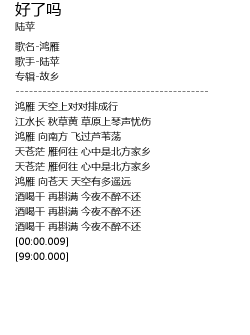 | [01:06.73] | hong yan xiang nan fang fei guo lu wei dang |
