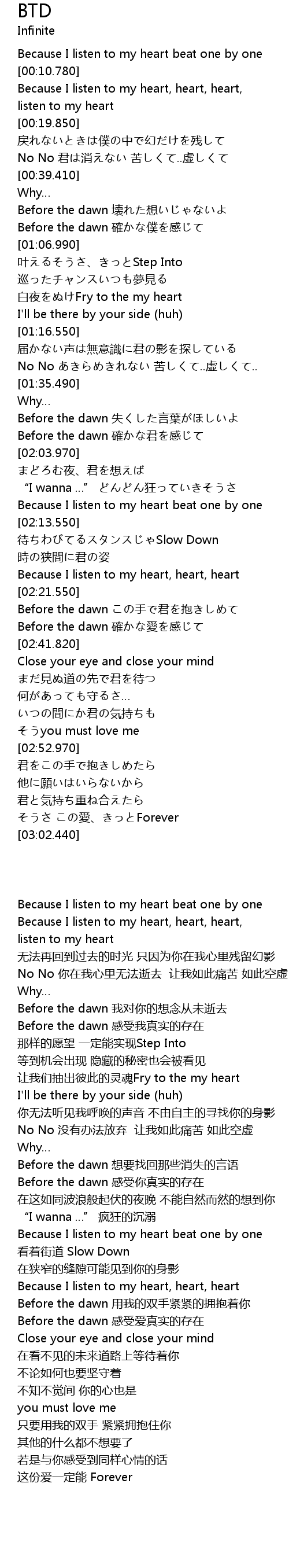 | [02:09.420] | Because I listen to my heart beat one by one |