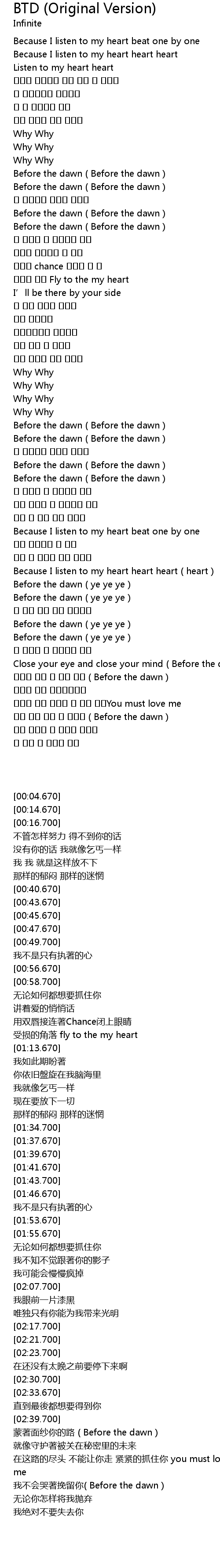 | [01:55.670] | Before the dawn ( Before the dawn ) |