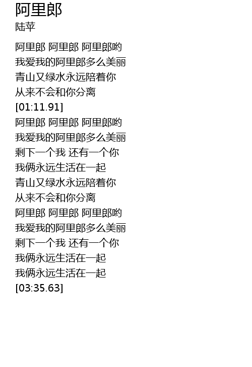 | [00:45.30] | wo ai wo de a li lang duo me mei li |