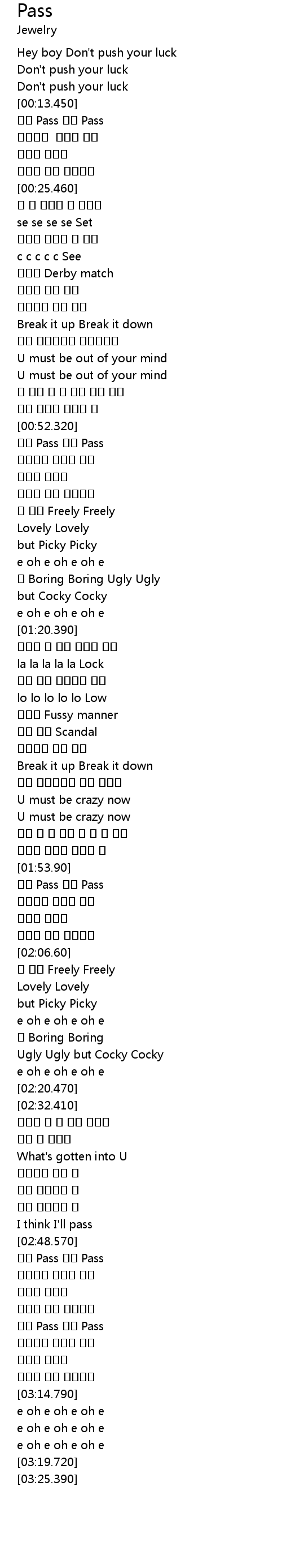 | [03:02.400] | 이젠 Pass 너는 Pass |