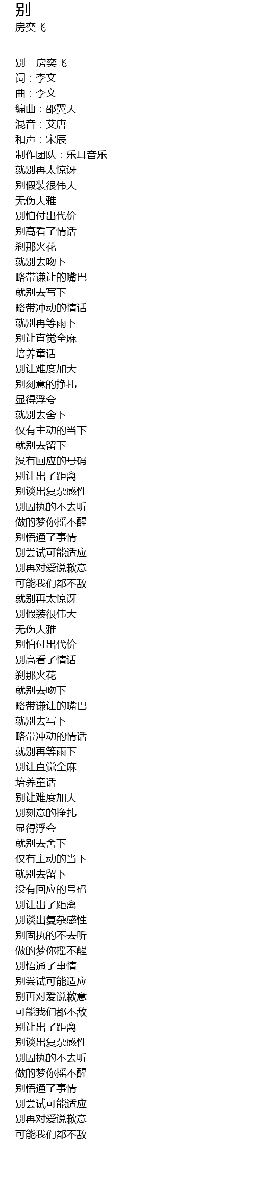 | 别 - 房奕飞 | |