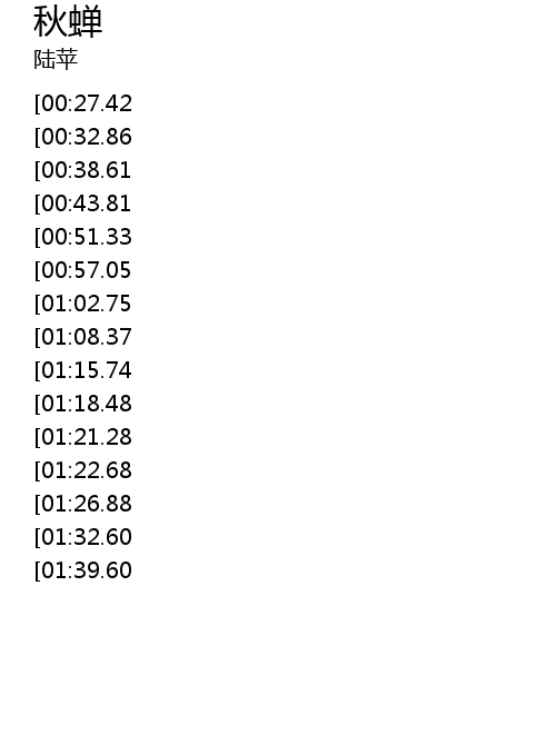 | [02:29.48][00:38.61] | 谁道秋霞一心愁 |