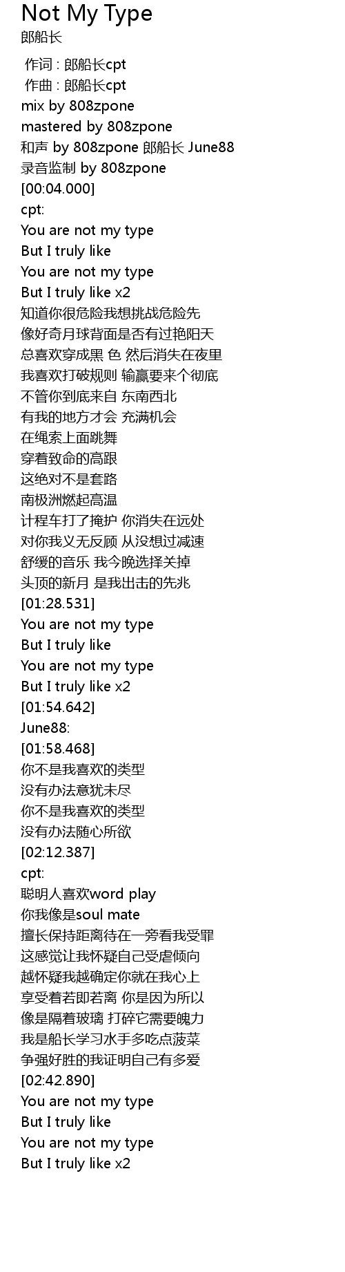 | [01:43.751] | You are not my type |