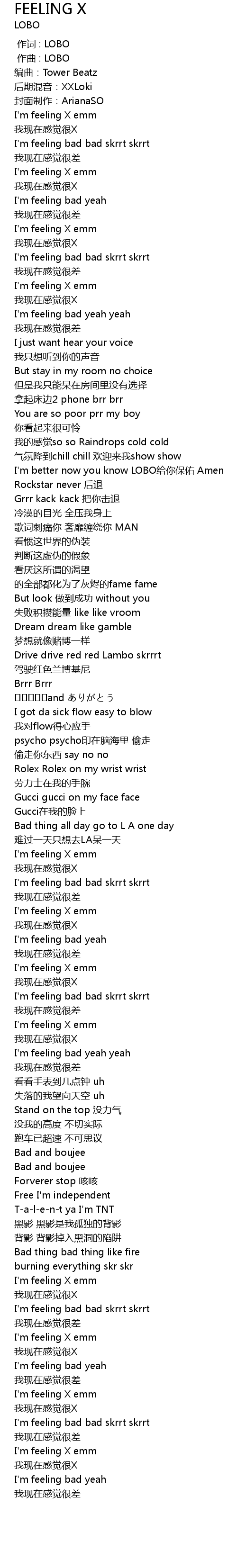 | [03:05.367] | I' m feeling bad bad skrrt skrrt |