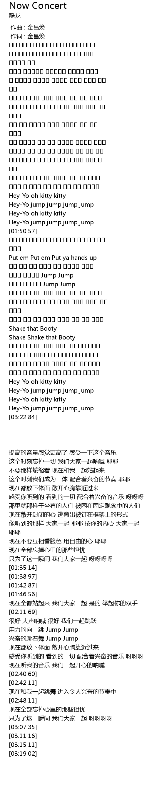 | [02:36.38] | 现在听我的音乐 我们一起开心的呐喊 |