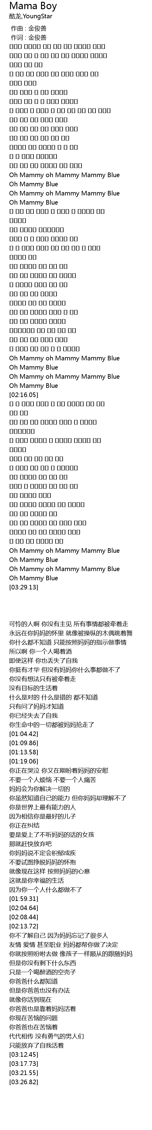 | [03:21.55] | Oh Mammy oh Mammy Mammy Blue |